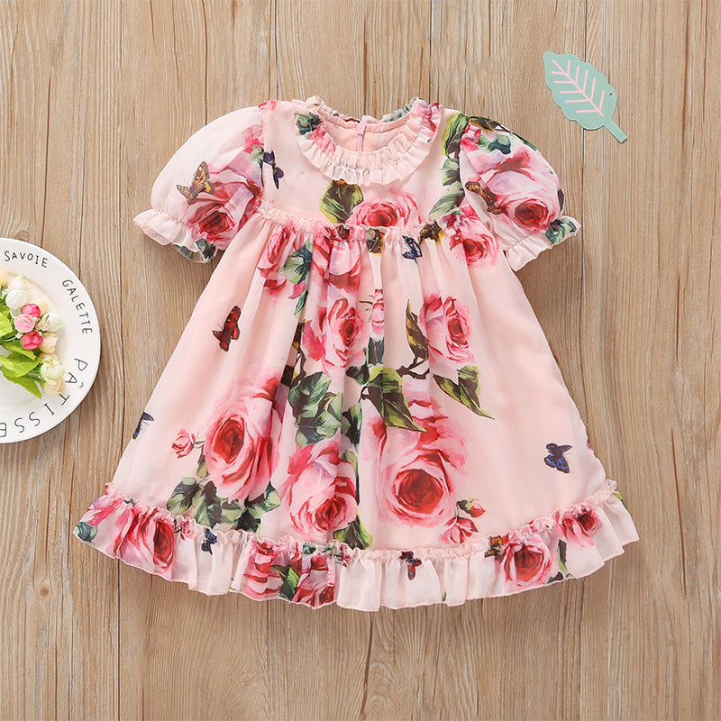 Cute Baby Girls Dress Flower Puff Sleeves A -line Dress For Baby